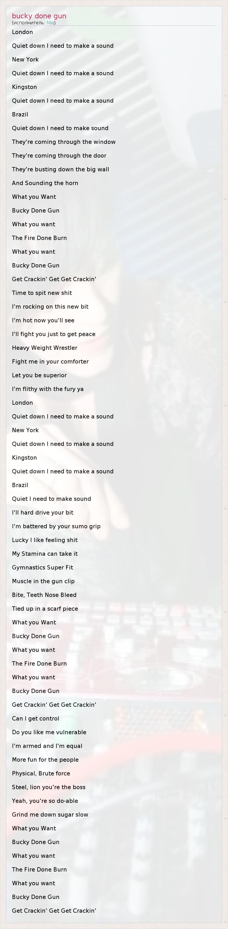 А как ты думаешь, о чем песня "bucky done gun" ?