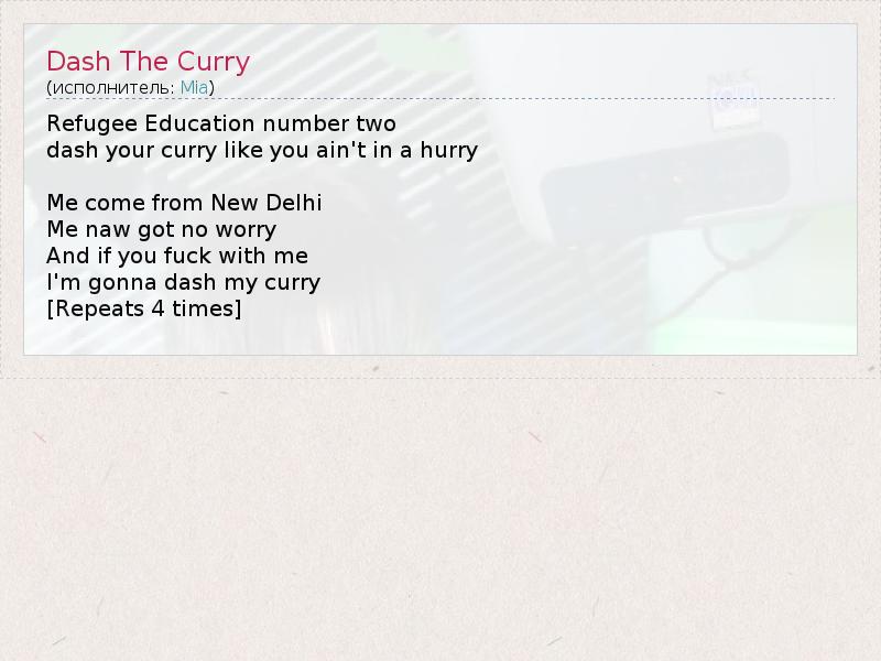А как ты думаешь, о чем песня "Dash The Curry" ?