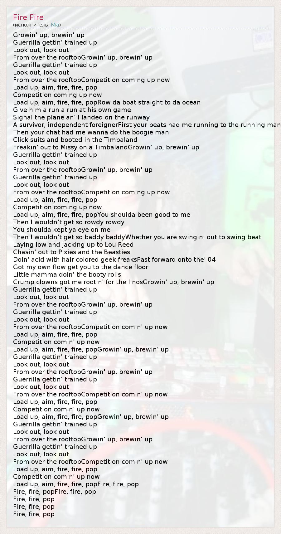 А как ты думаешь, о чем песня "Fire Fire" ?