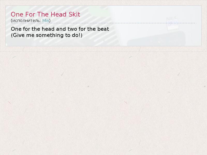 А как ты думаешь, о чем песня "One For The Head Skit" ?