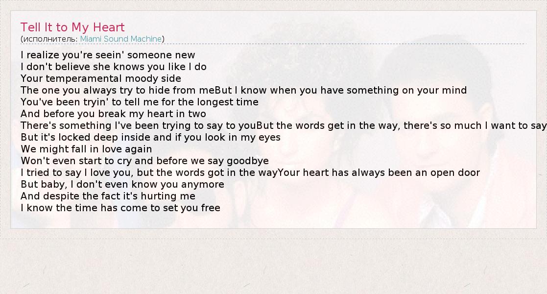 А как ты думаешь, о чем песня "Tell It to My Heart" ?