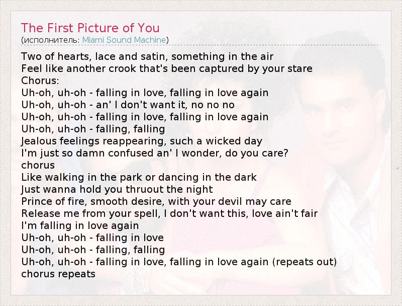 А как ты думаешь, о чем песня "The First Picture of You" ?