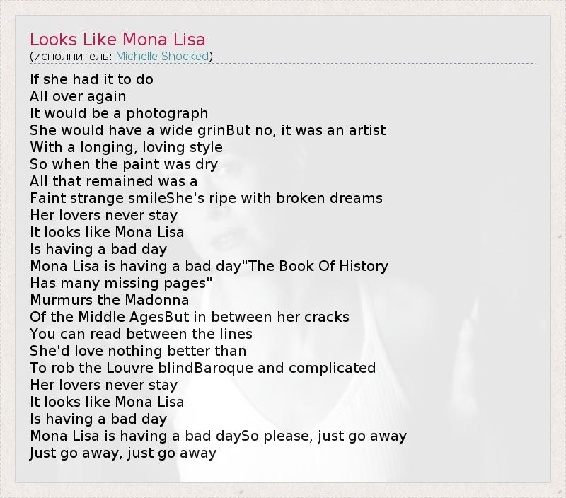 А как ты думаешь, о чем песня "Looks Like Mona Lisa" ?