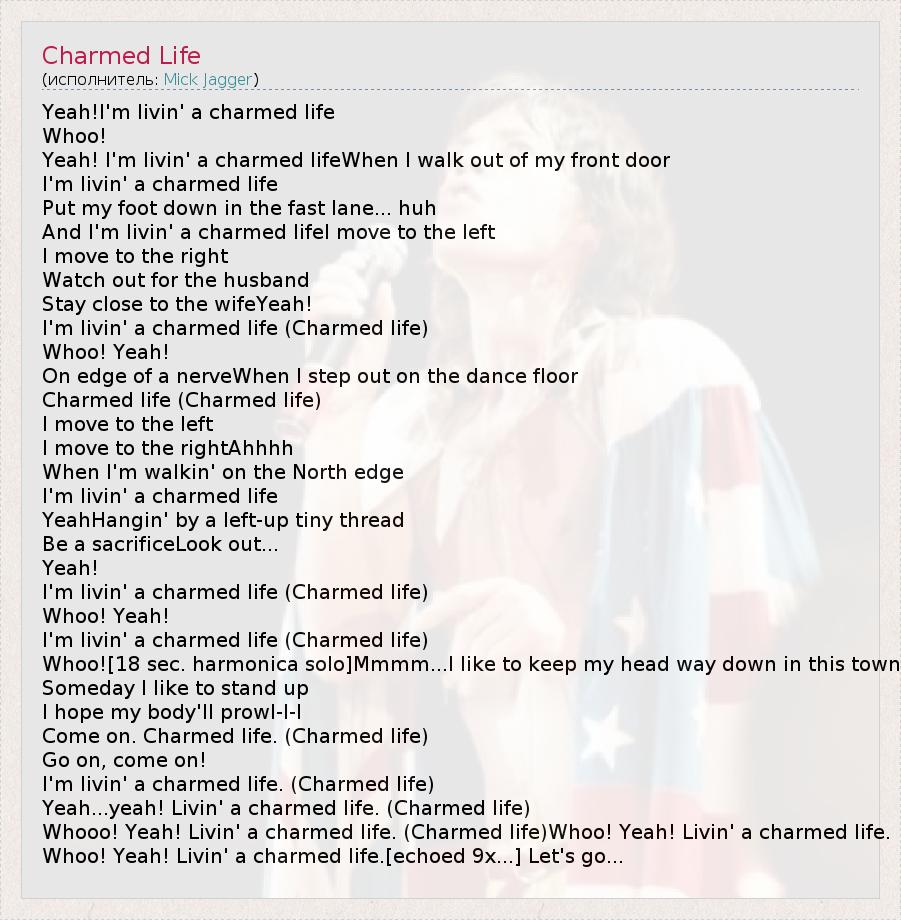 Whooo! Yeah! Livin' a charmed life. (Charmed life)Whoo! Yeah! Livin' a charmed life.