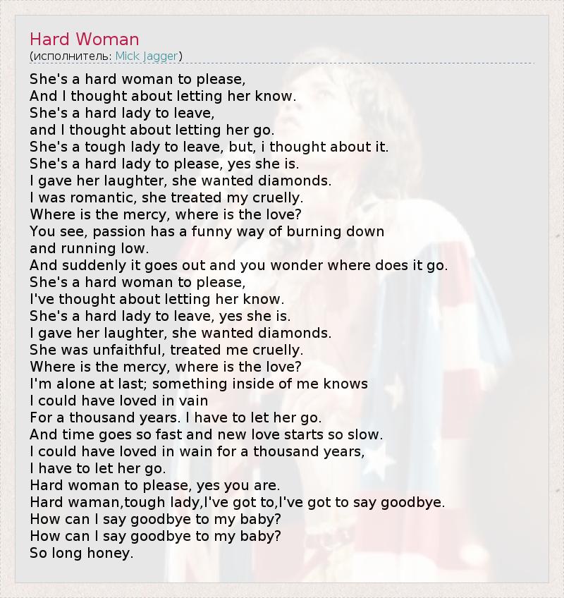 А как ты думаешь, о чем песня "Hard Woman" ?