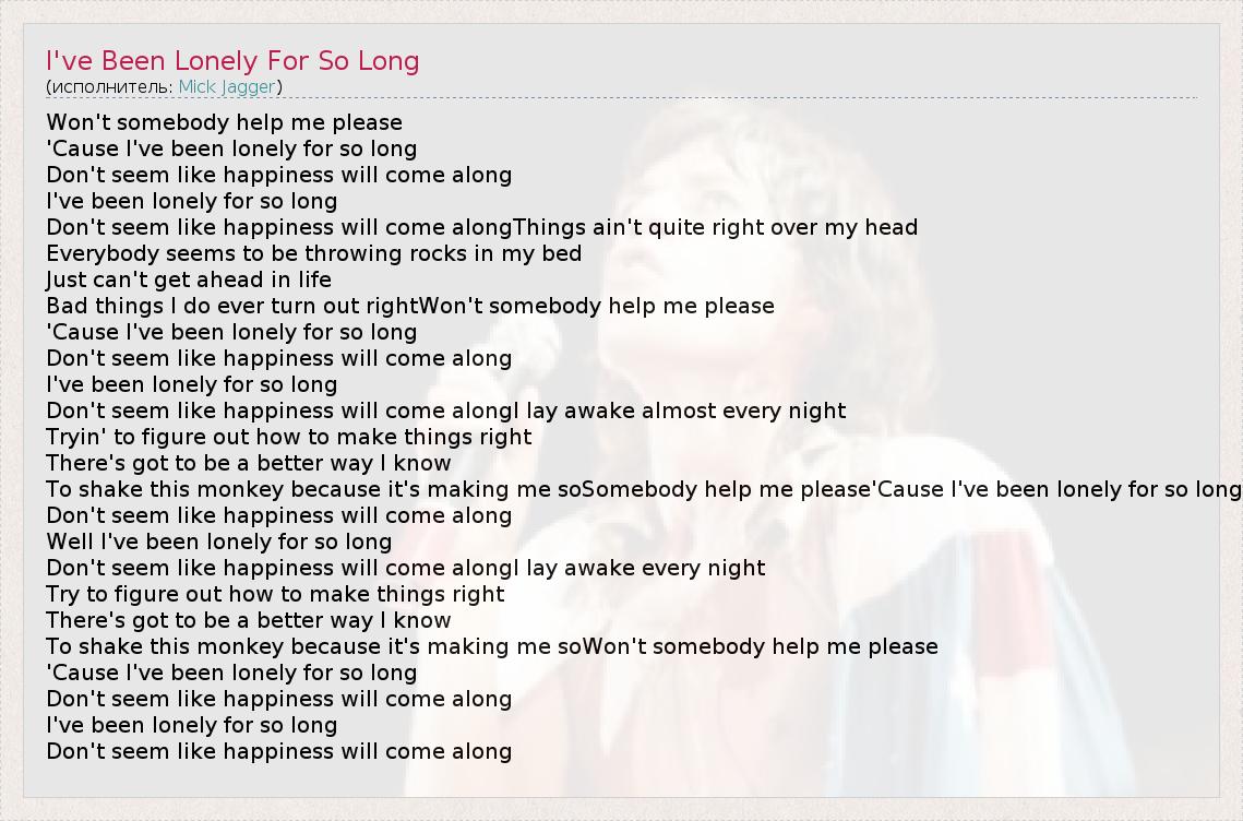 А как ты думаешь, о чем песня "I've Been Lonely For So Long" ?