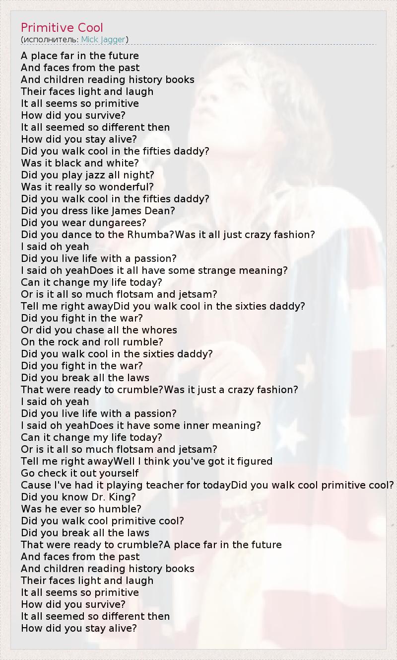 А как ты думаешь, о чем песня "Primitive Cool" ?