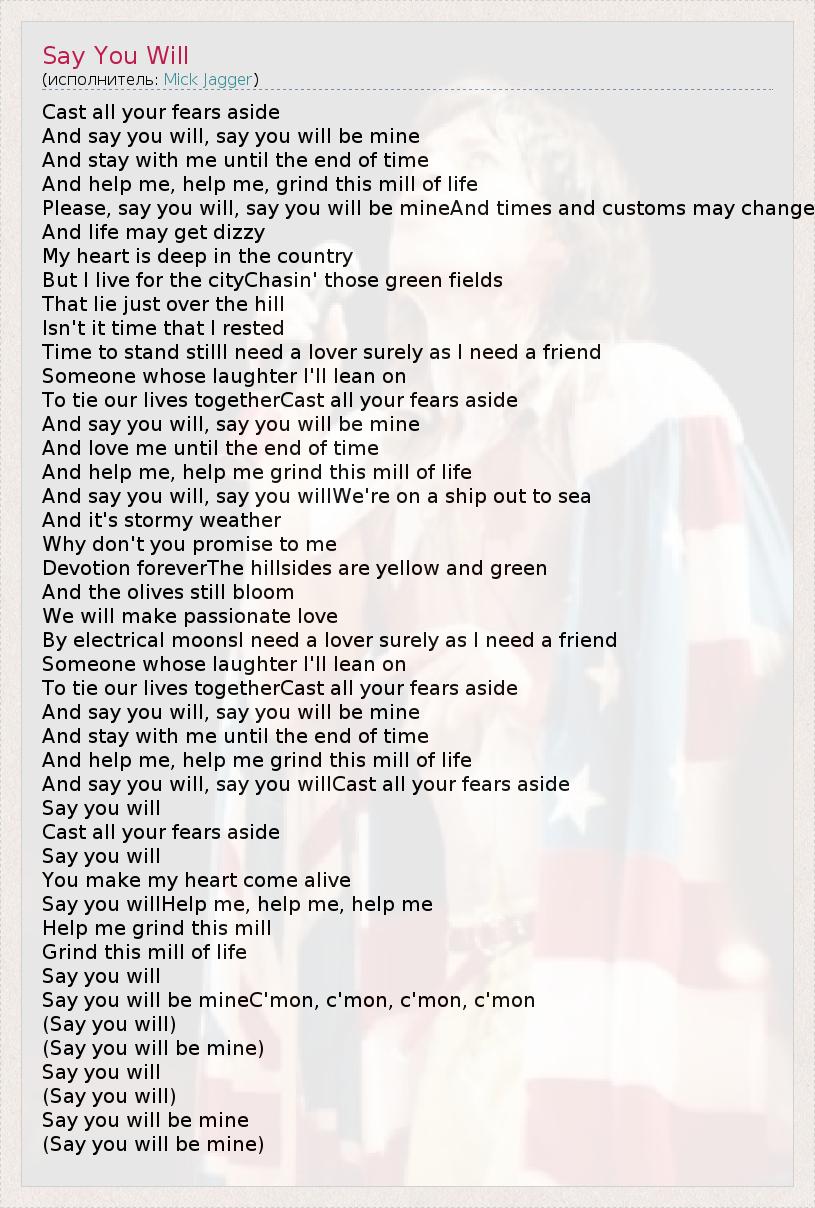 Say you will be mineC'mon, c'mon, c'mon, c'mon
