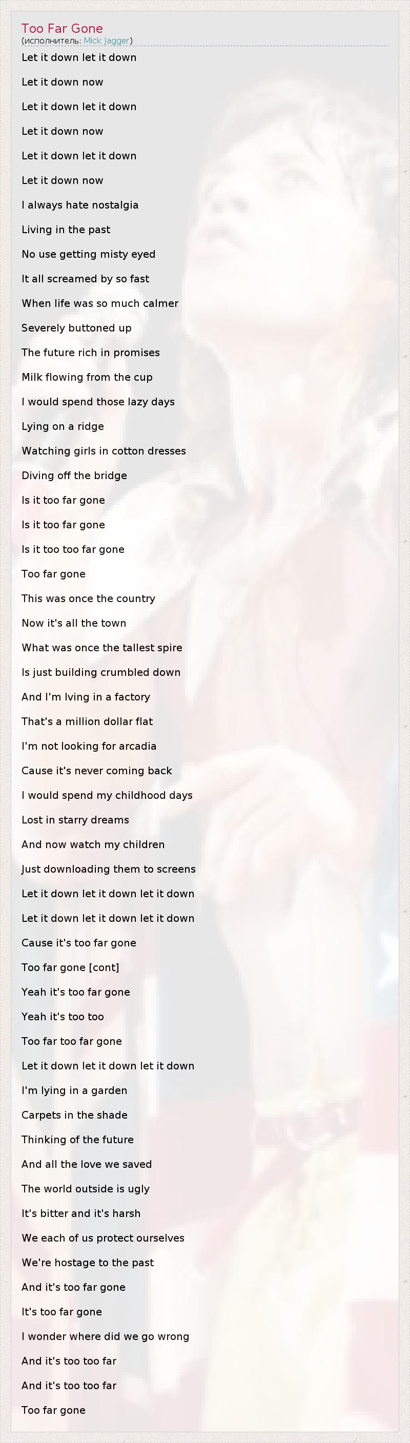 А как ты думаешь, о чем песня "Too Far Gone" ?
