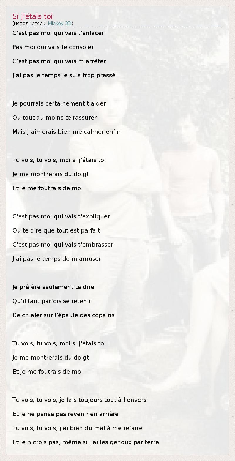 А как ты думаешь, о чем песня "Si j'étais toi" ?