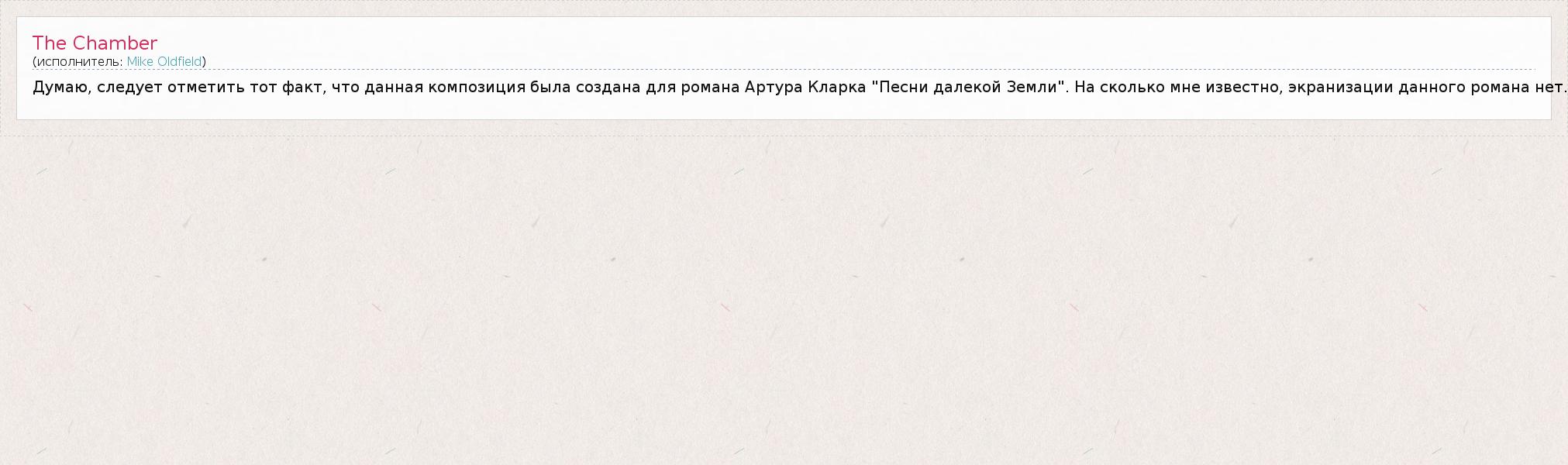 Думаю, следует отметить тот факт, что данная композиция была создана для романа Артура Кларка "Песни далекой Земли". На сколько мне известно, экранизации данного романа нет.