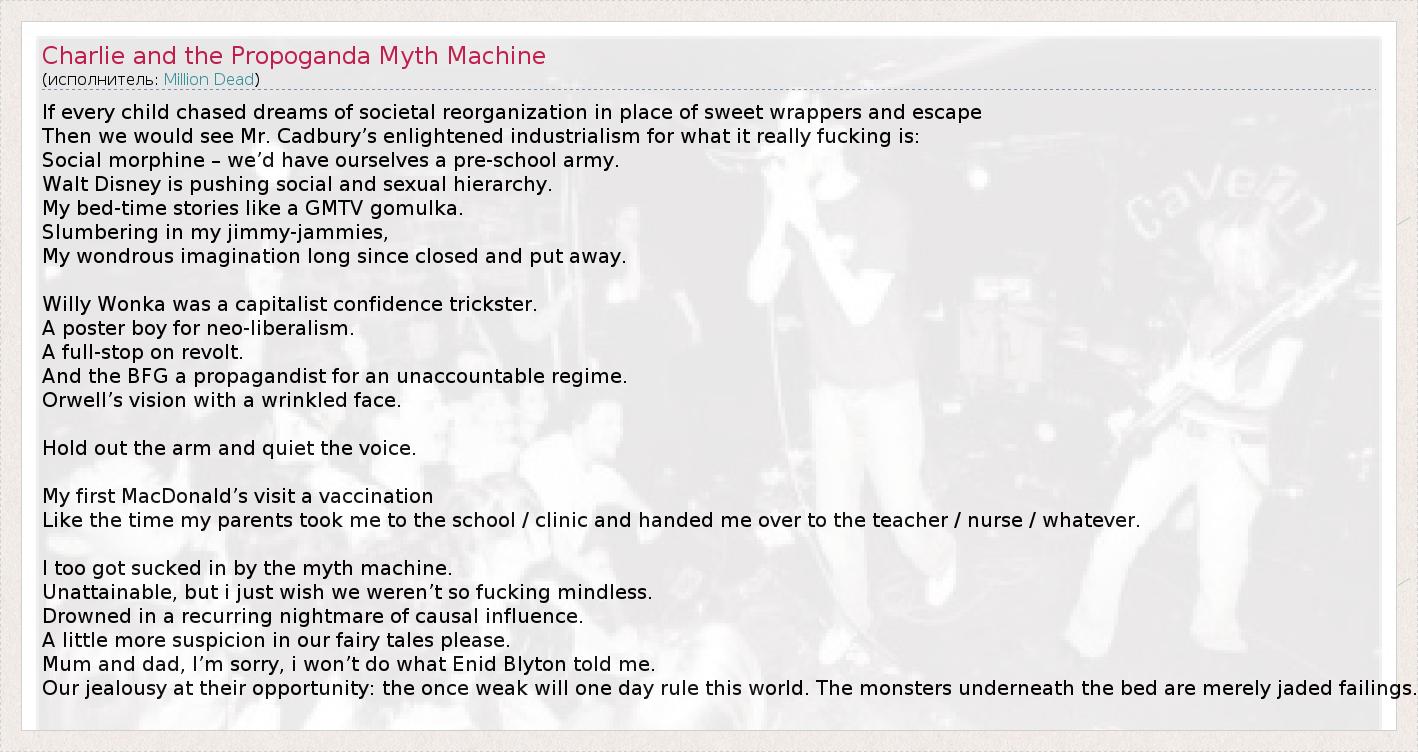 ГлавнаяИсполнителиMillion DeadCharlie and the Propoganda Myth Machine