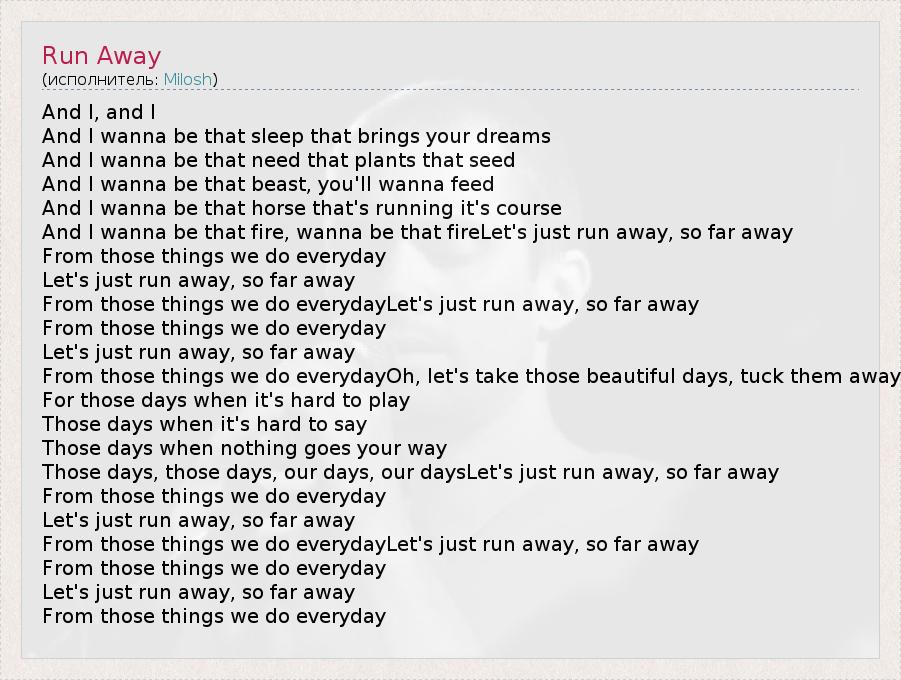 And I wanna be that fire, wanna be that fireLet's just run away, so far away