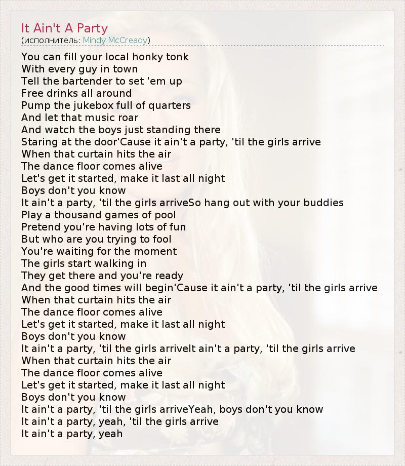And the good times will begin'Cause it ain't a party, 'til the girls arrive