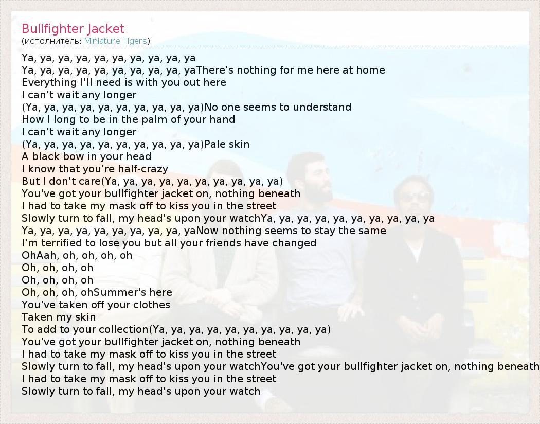 А как ты думаешь, о чем песня "Bullfighter Jacket" ?