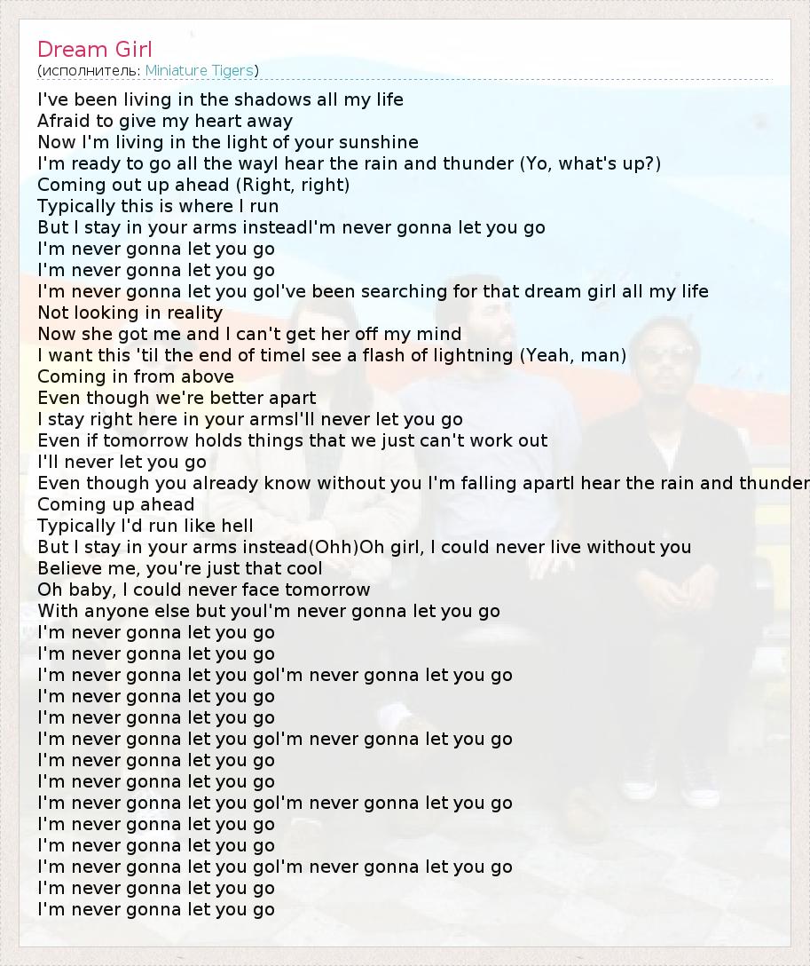 А как ты думаешь, о чем песня "Dream Girl" ?