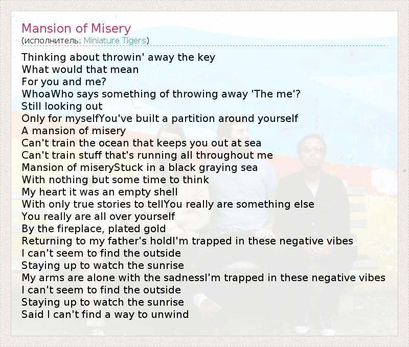 А как ты думаешь, о чем песня "Mansion of Misery" ?