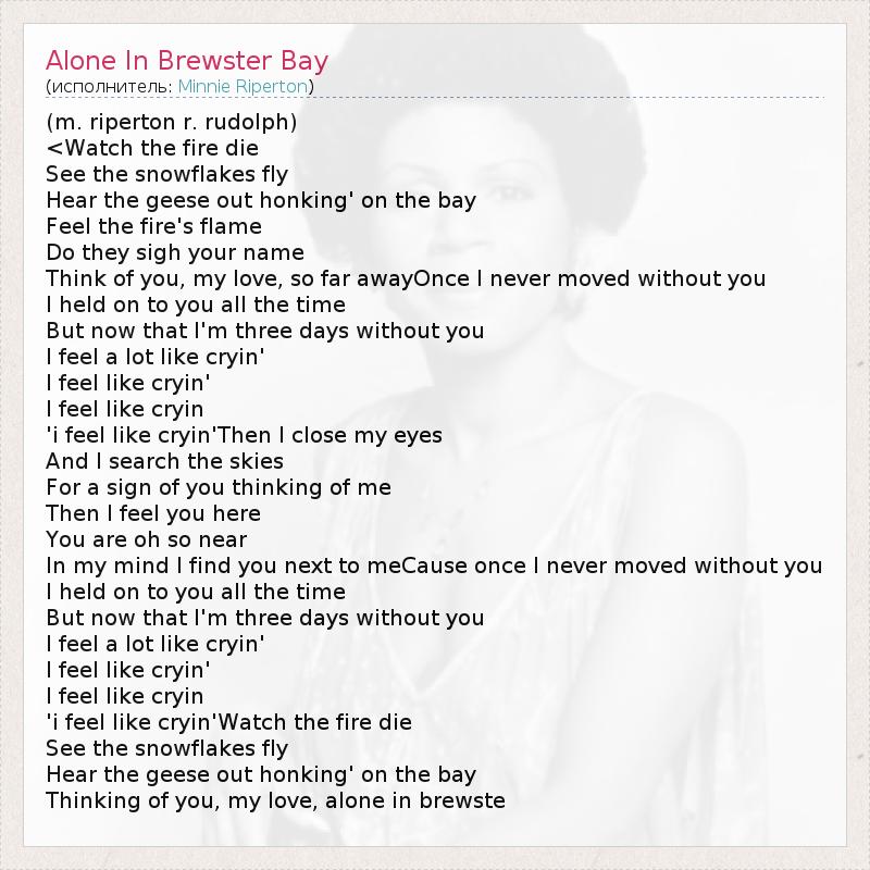 А как ты думаешь, о чем песня "Alone In Brewster Bay" ?