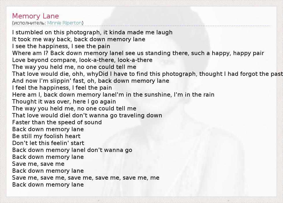 А как ты думаешь, о чем песня "Memory Lane" ?