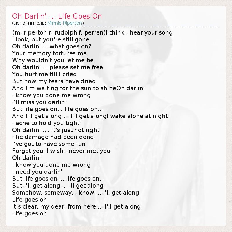 А как ты думаешь, о чем песня "Oh Darlin'.... Life Goes On" ?