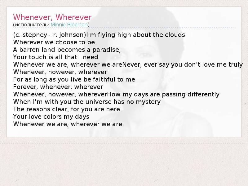 А как ты думаешь, о чем песня "Whenever, Wherever" ?