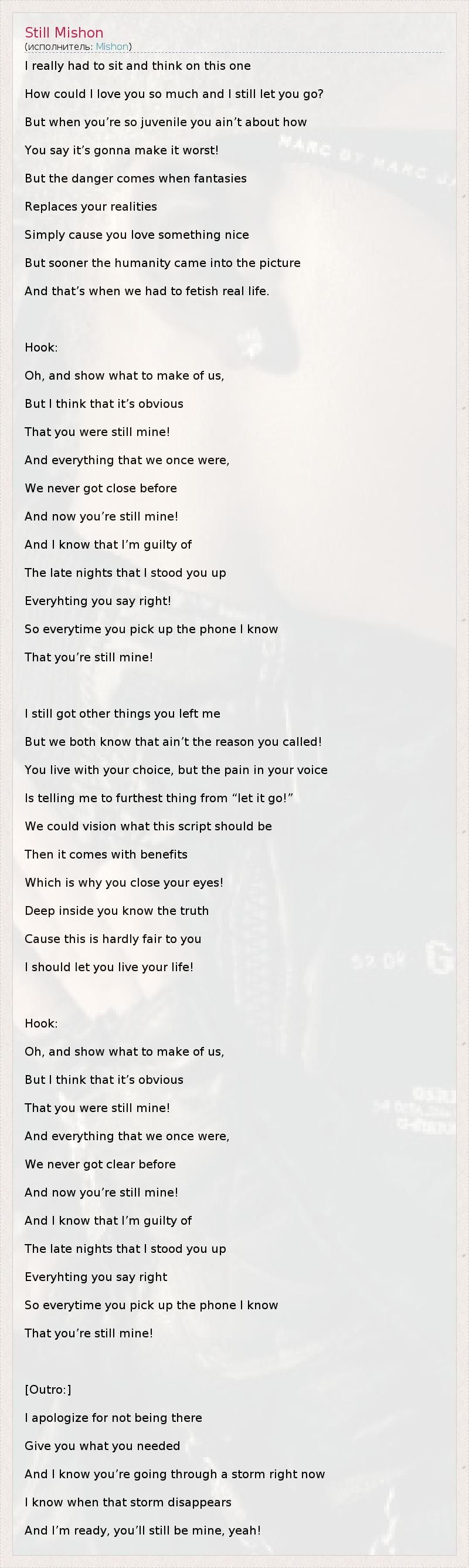 А как ты думаешь, о чем песня "Still Mishon" ?