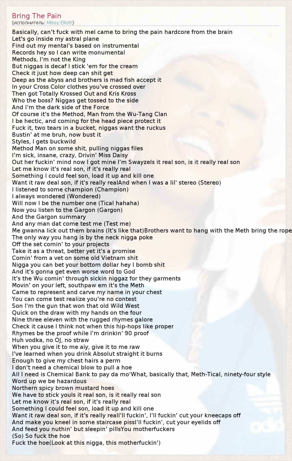 А как ты думаешь, о чем песня "Bring The Pain" ?