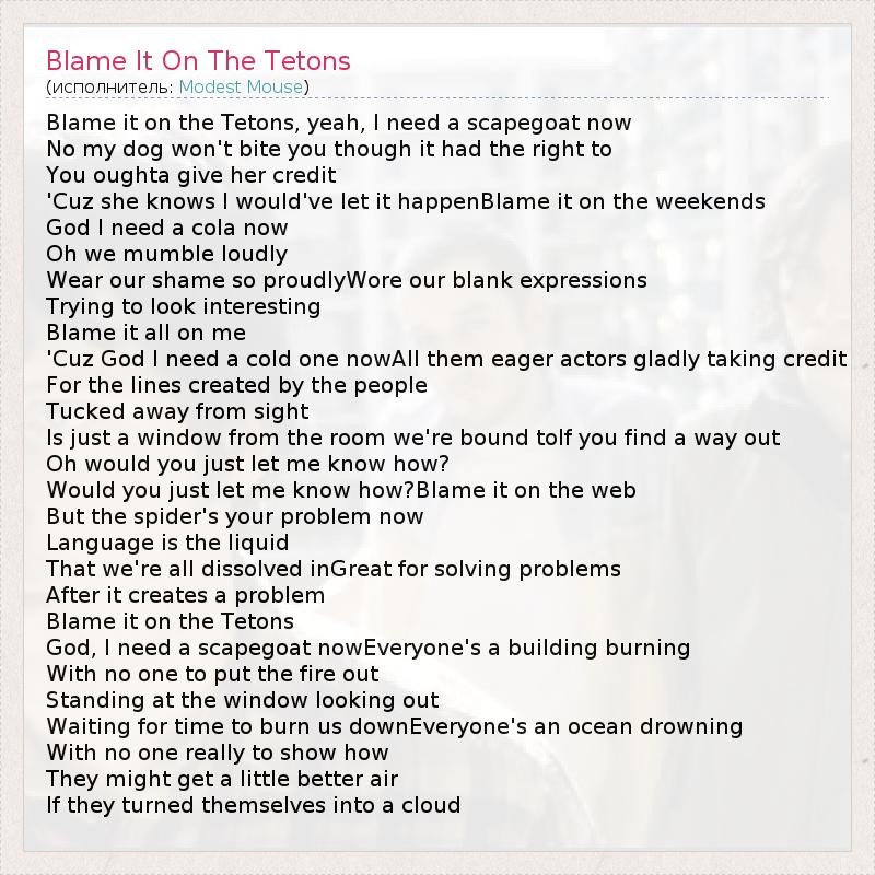 А как ты думаешь, о чем песня "Blame It On The Tetons" ?