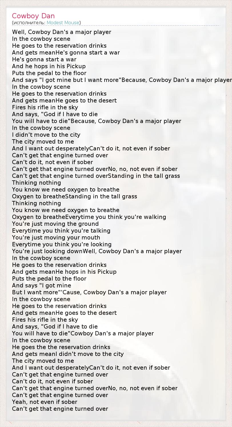 А как ты думаешь, о чем песня "Cowboy Dan" ?