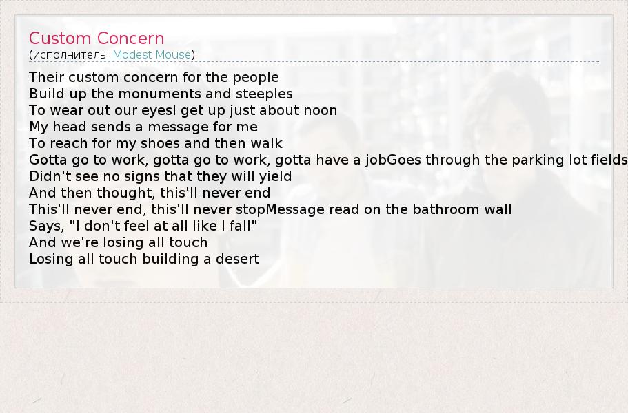 А как ты думаешь, о чем песня "Custom Concern" ?