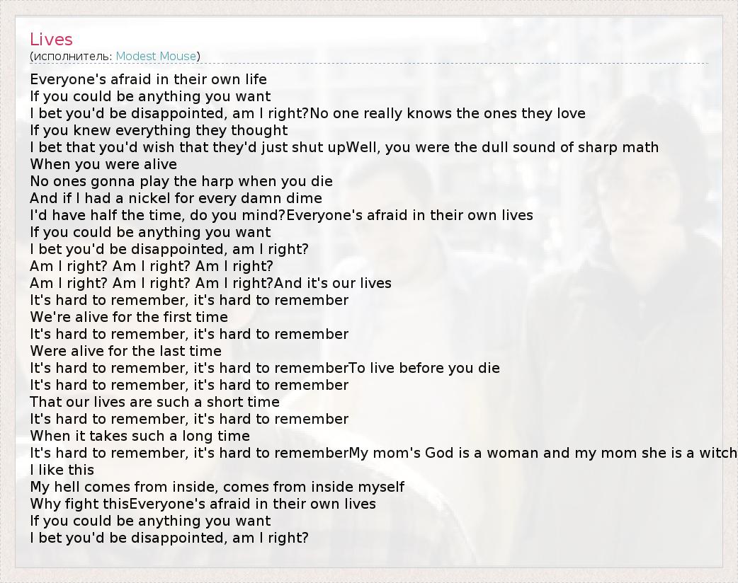 А как ты думаешь, о чем песня "Lives" ?