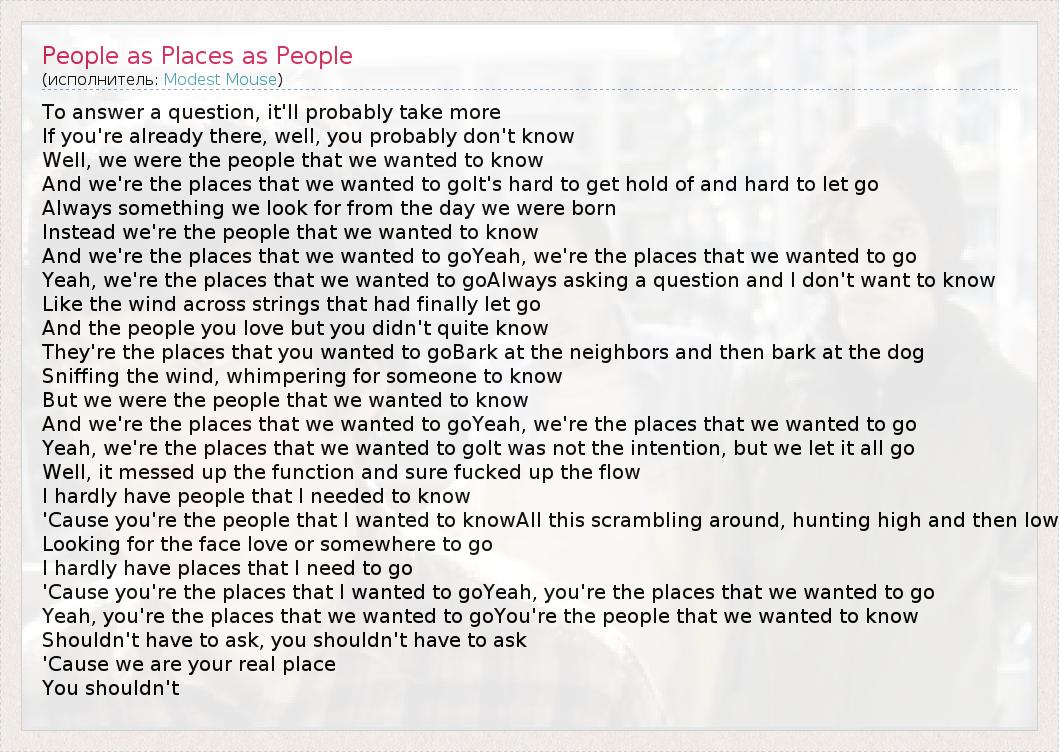 ГлавнаяИсполнителиModest MousePeople as Places as People