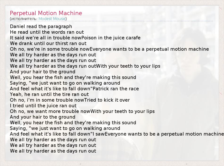 А как ты думаешь, о чем песня "Perpetual Motion Machine" ?