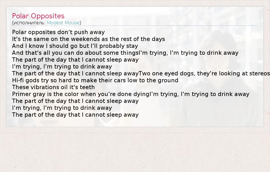 А как ты думаешь, о чем песня "Polar Opposites" ?