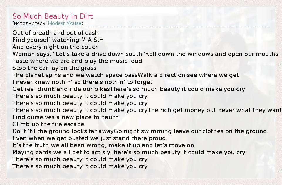 А как ты думаешь, о чем песня "So Much Beauty in Dirt" ?