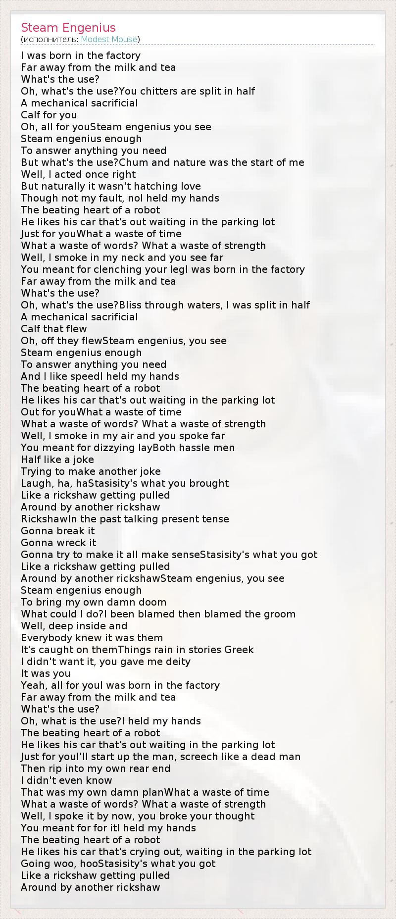 А как ты думаешь, о чем песня "Steam Engenius" ?