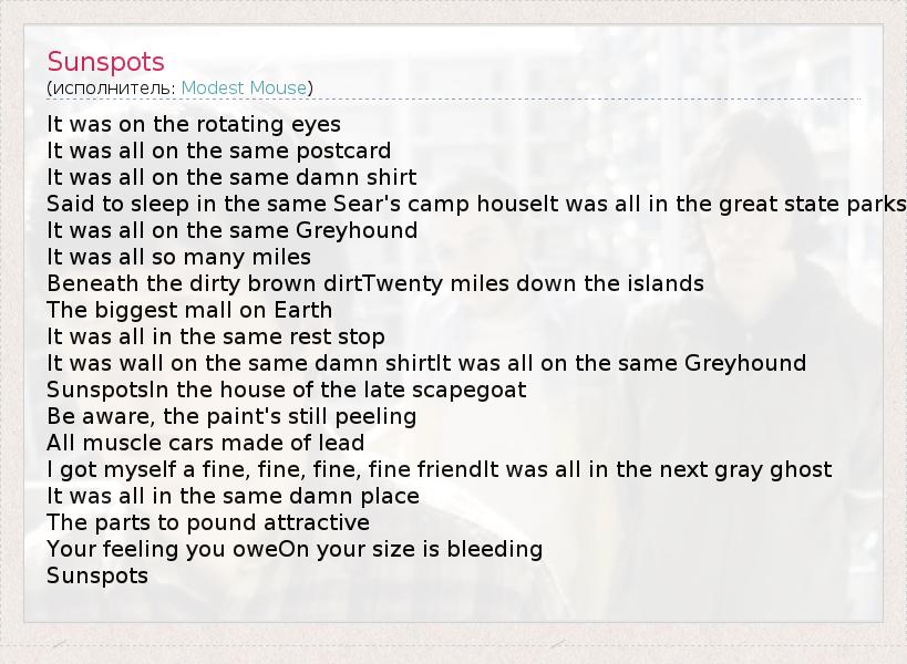 Это интересно:Modest Mouse, эта "скромная мышка" американского инди-рока, оказалась в положении некоего серого кардинала, о котором мало что знают среднестатистические граждане, но чье присутствие хорошо ощущают на себе коллеги по цеху. За время далеко не безоблачного пути, пройденного командой с середины 90-х, "Мышка" успела заметно подрасти, окрепнуть и обзавестись нескромной армией почитателей.... продолжение