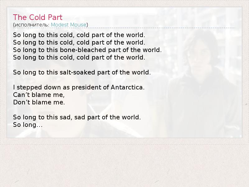 А как ты думаешь, о чем песня "The Cold Part" ?