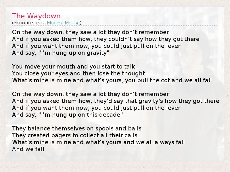 Это интересно:Modest Mouse, эта "скромная мышка" американского инди-рока, оказалась в положении некоего серого кардинала, о котором мало что знают среднестатистические граждане, но чье присутствие хорошо ощущают на себе коллеги по цеху. За время далеко не безоблачного пути, пройденного командой с середины 90-х, "Мышка" успела заметно подрасти, окрепнуть и обзавестись нескромной армией почитателей.... продолжение