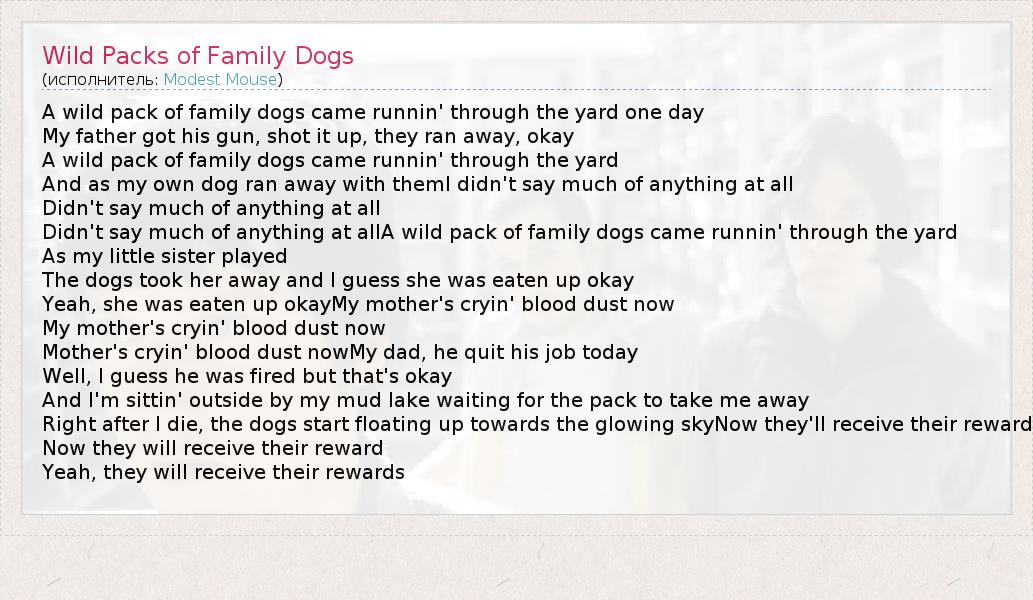 А как ты думаешь, о чем песня "Wild Packs of Family Dogs" ?