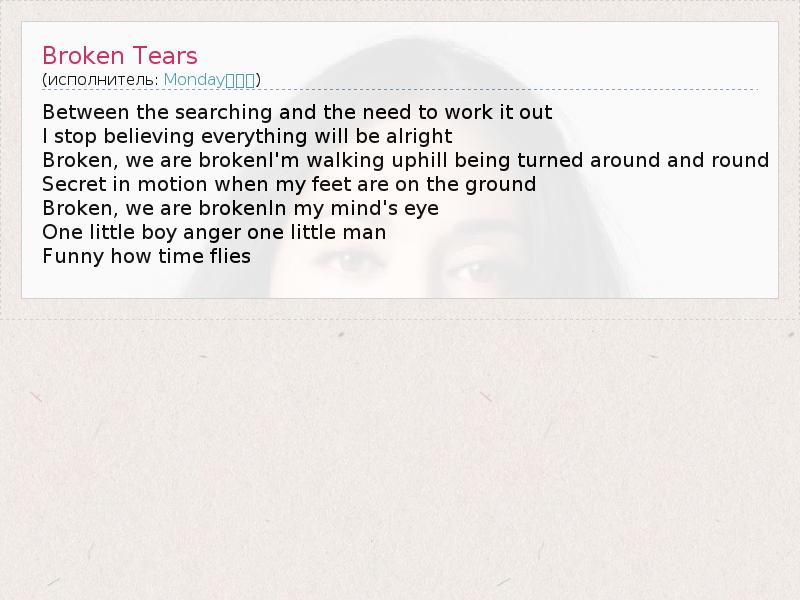 А как ты думаешь, о чем песня "Broken Tears" ?
