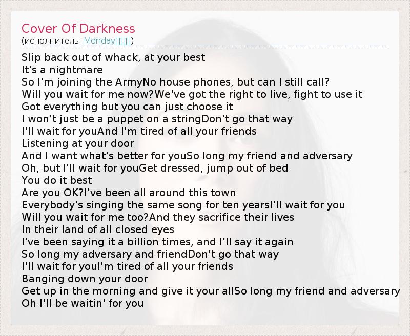 А как ты думаешь, о чем песня "Cover Of Darkness" ?