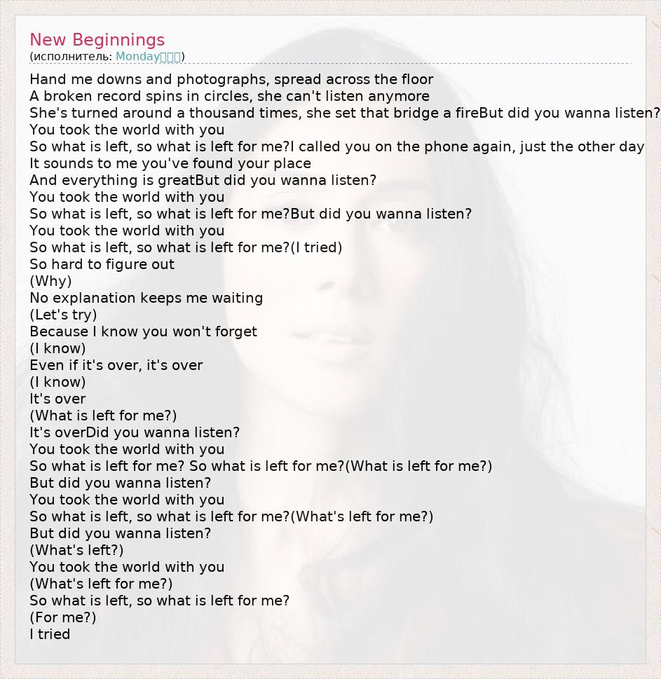 А как ты думаешь, о чем песня "New Beginnings" ?