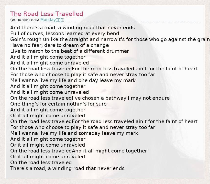 А как ты думаешь, о чем песня "The Road Less Travelled" ?