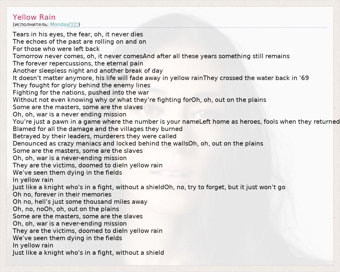 А как ты думаешь, о чем песня "Yellow Rain" ?