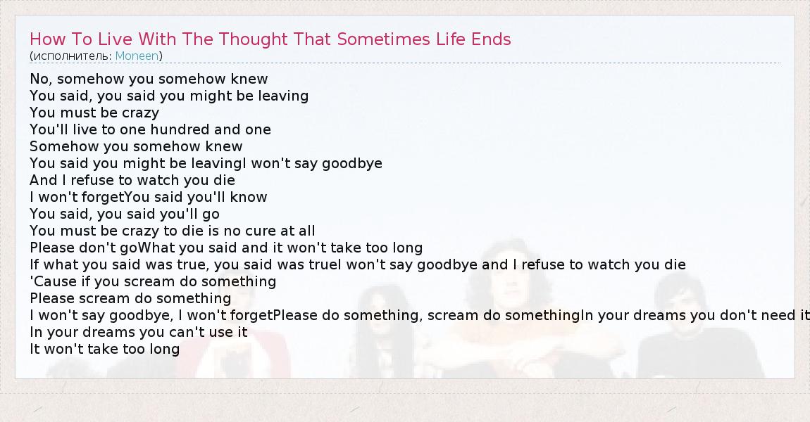 ГлавнаяИсполнителиMoneenHow To Live With The Thought That Sometimes Life Ends