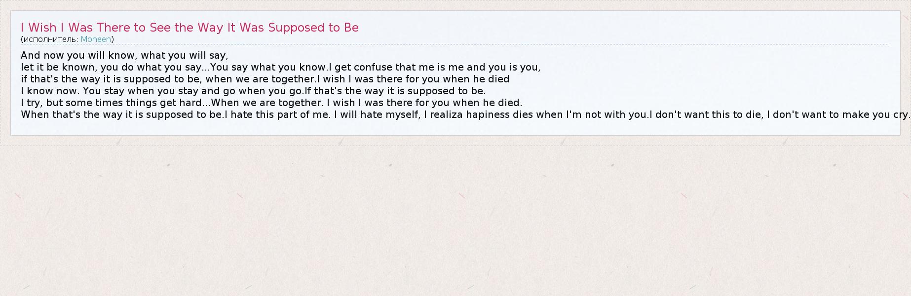 ГлавнаяИсполнителиMoneenI Wish I Was There to See the Way It Was Supposed to Be