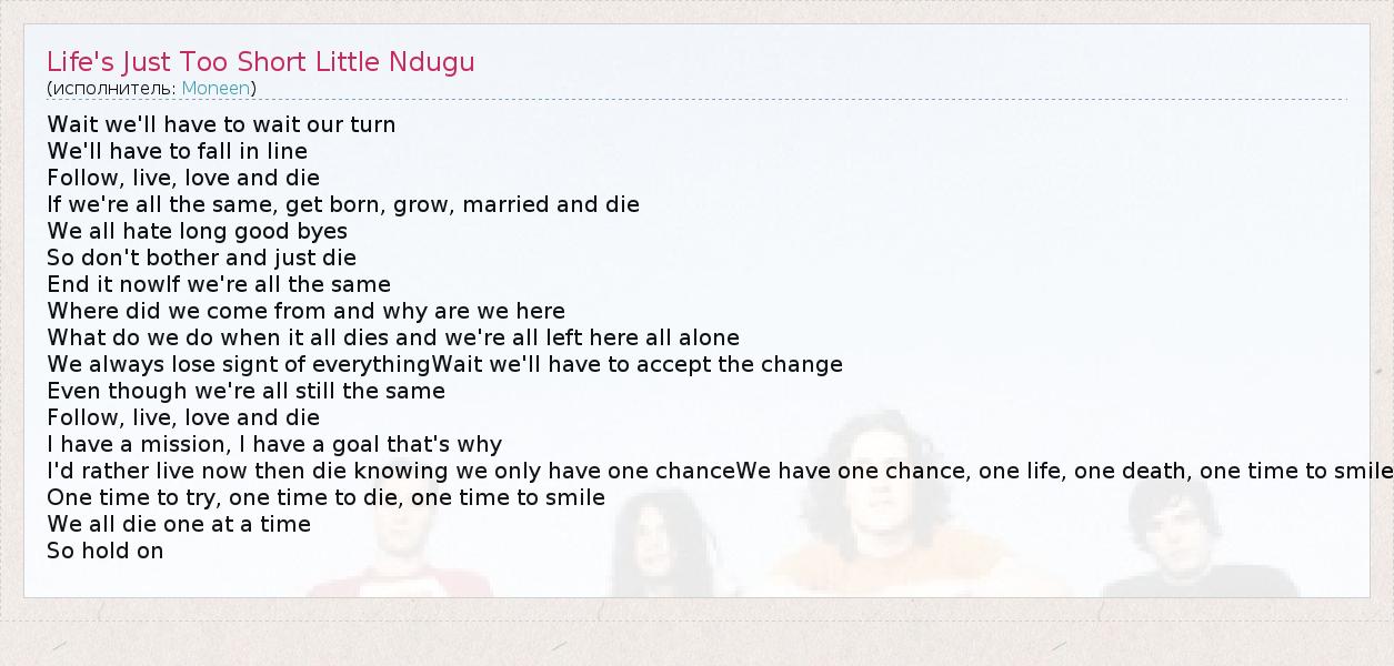 А как ты думаешь, о чем песня "Life's Just Too Short Little Ndugu" ?
