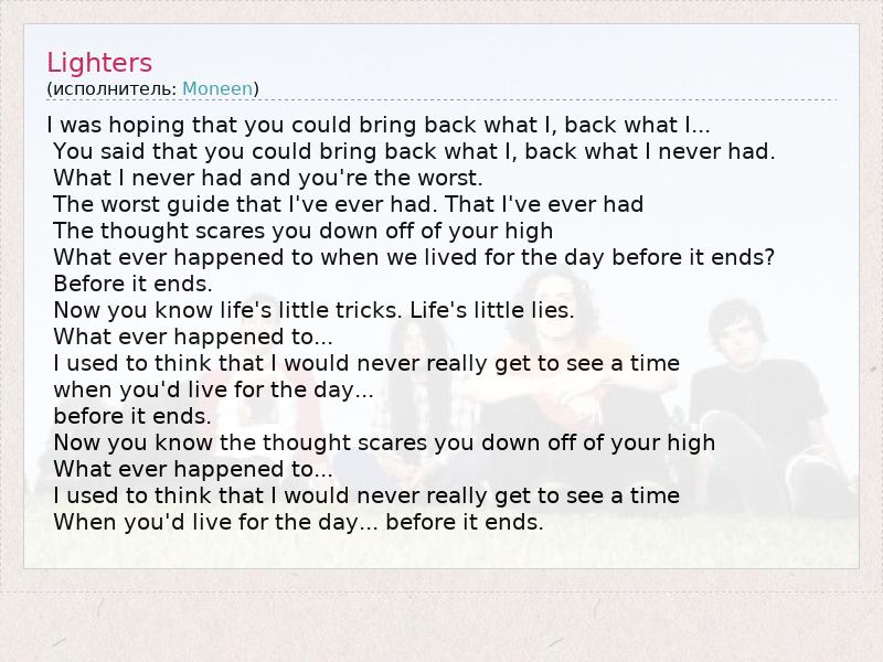 Это интересно:The band formed in 1999 after the dissolution of another band, called Perfectly Normal. Moneen's original bass player, Mark Bowser, was replaced by Chris Slorach, who left the band after the release of The Theory of Harmonial Value. Erik Hughes (who played bass for the band on their first Canadian tour) later became the permanent bass player for the band.The band released their first two albums on Smallman Records, and later signed to Vagrant Records. Smallman Records still distributes their albums in Canada. In 2005 they released a split EP with, friends, Alexisonfire, on Dine Alone Records, on which each band covered two of the other's songs, plus an original song.In 2005,... продолжение