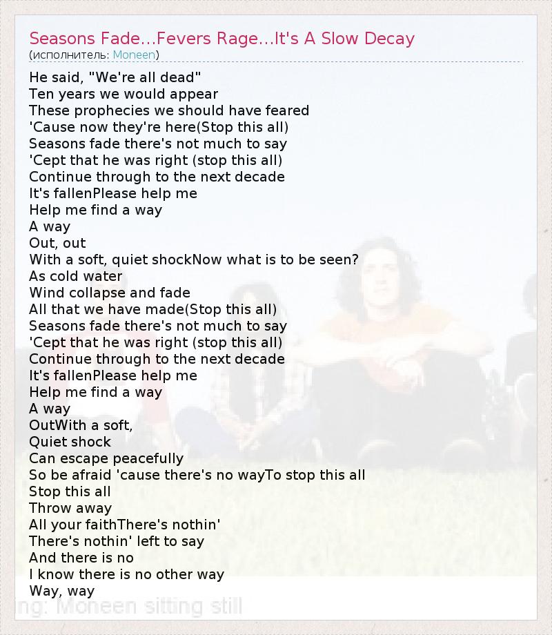 А как ты думаешь, о чем песня "Seasons Fade...Fevers Rage...It's A Slow Decay" ?